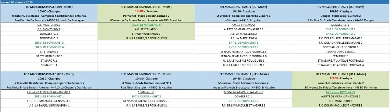 Un samedi qui sera très chargé, avec pas moins de 5 rencontres et 1 plateau U11.