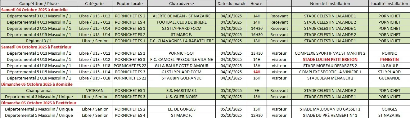 Vétérans, seniors B & D en déplacement, dimanche après-midi