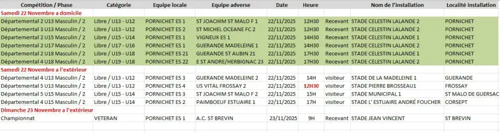 Pas de rencontres seniors ce week-end, seule la catégorie vétérans se déplace à St Brévin, dimanche matin.