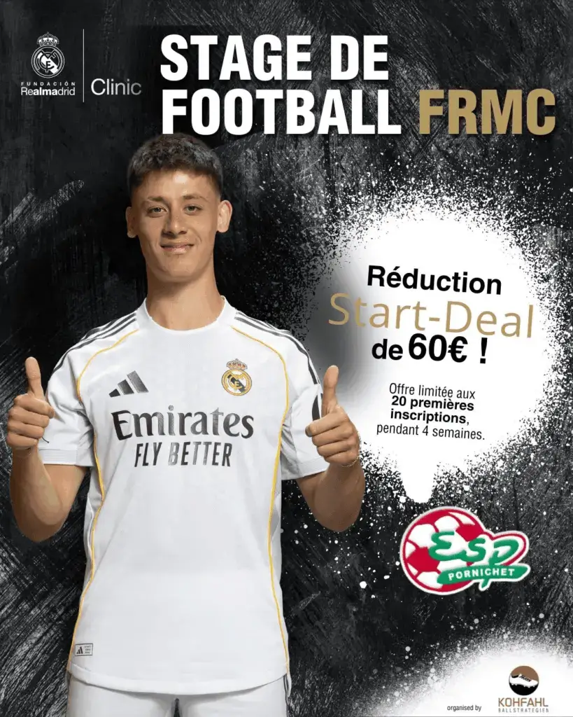 ➡️Ouvert à tous, filles et garçons, de 7 à 16 ans ➡️Licenciés ou non, de tout niveau ➡️Equipement Adidas premium 6 articles (kit, ballon, gourde, sac…) ➡️Repas du midi inclus ➡️Méthodologie de la Fundacion Real Madrid Clinics ➡️Opportunité de vivre un week-end unique à Madrid.